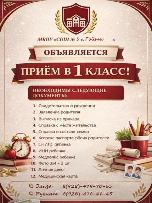 МБОУ СОШ №5 с.Гойты была построена и открыта в 2009 году на 360 посадочных мест. В школе работают 40 педагогов из них высшею категорию имеют 3 учителя и 19 учителей первой степени